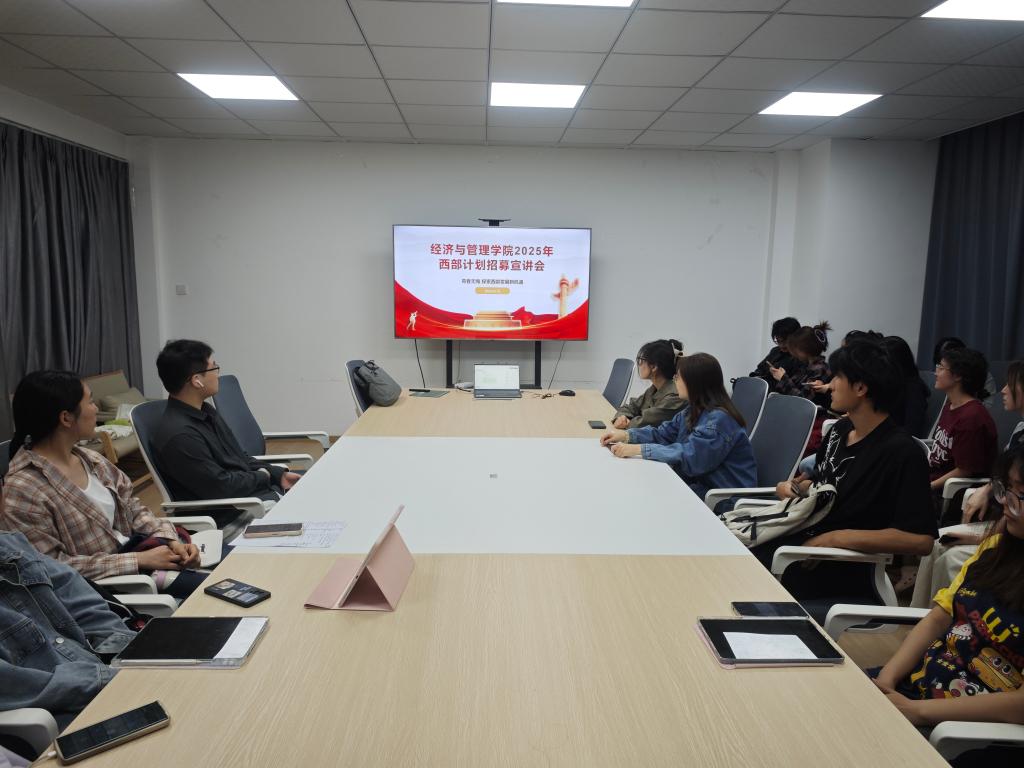 为积极响应国家号召,鼓励青年学子投身西部建设,助力乡村振兴,经济与管理学院于4月16日在义苑一站式学生社区举办了大学生志愿服务西部计划政策宣讲会。会议采用线上和线下相结合的方式,学院2025届毕业生代表,2022、2023级学生代表及毕业班辅导员共230余人参加。
