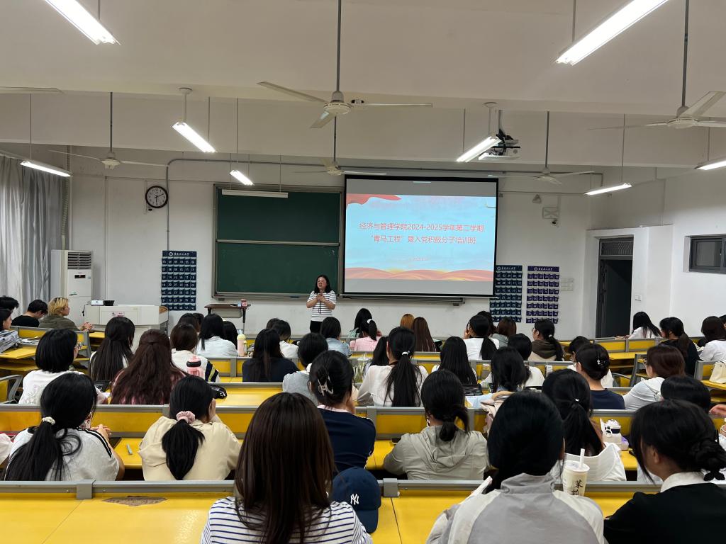 为进一步深化入党积极分子及学生干部对党的认识,强化使命担当,经济与管理学院于5月19日举办“青马工程”暨入党积极分子培训班结业仪式,学院党委副书记胡珊珊作总结讲话,98名入党积极分子和学生干部参与。