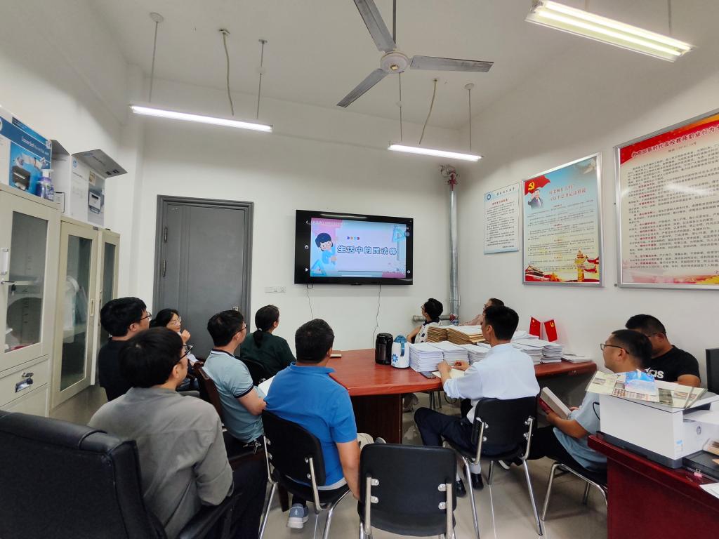 学院组织志愿者在教学区、宿舍区和食堂等场所投放民法典宣传手册,同时利用学院电子屏和公众号加强宣传,内容涵盖物权、人格权、文明上网等实用知识,构建“抬头见法、低头学法” 的浸润式环境。