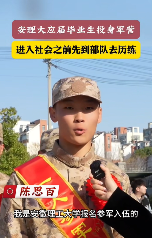 “学院的老师们给我详细介绍了大学生参军入伍的优惠政策,包括学费补偿、退役后的升学和就业扶持等。这些政策让我打消了顾虑,也让我感受到了国家对大学生参军入伍的重视和支持。”陈思百说。在学校和家人的支持下,陈思百坚定了参军入伍的决心。他积极准备,顺利通过了体检和政审,成为了一名光荣的中国人民解放军。