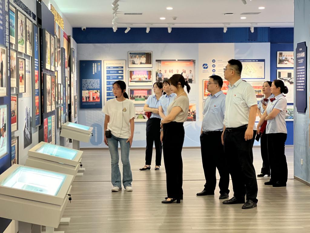 全体师生、银行工作人员参观校史馆,泛黄的校史文献与数字化展陈交相辉映,大家纷纷驻足于老照片与实物档案前,追溯学校跨越式发展历程。