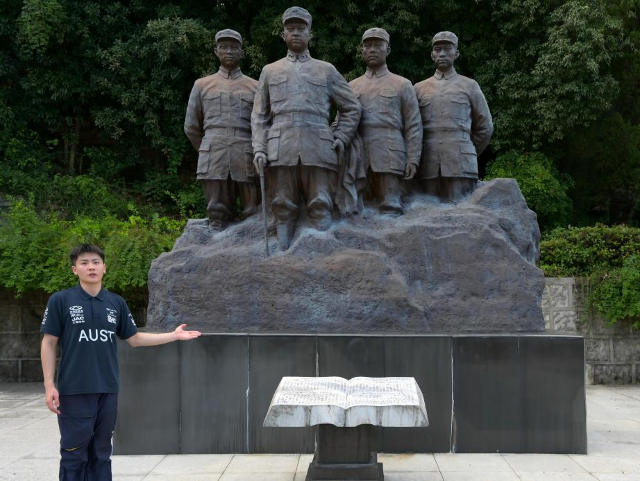 雕像下的青春思政课:队长郭华龙分享革命事迹(摄影:杨振坤)