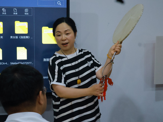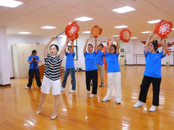在非遗文化展区,传承人盛承梅老师生动讲解了渔鼓舞的历史源流、发展现状,并指导渔鼓舞基础舞步。“渔鼓舞的律动太有感染力了,真想深入学下去!”沉浸其中的队员们研习舞步后难掩兴奋。