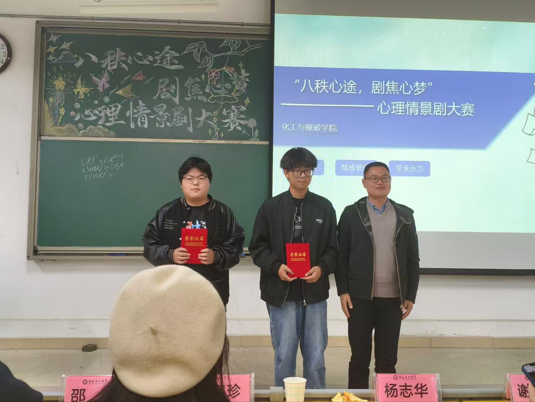 11月12日晚,化工与爆破学院心理情景剧比赛在明理北514举行。本次比赛以“八秩心途,剧焦心梦”为主题,旨在通过舞台剧的形式,引导学生关注心理健康,探索成长过程中的心理议题,提升心理调适能力。