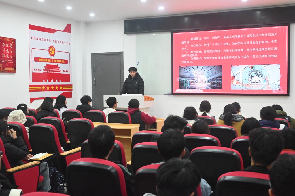 为引导青年学生深刻把握国家发展大势,找准自身成长定位。11月17日晚,医学院学生会在崇仁楼B119报告厅组织开展以“奋进十五五,共筑中国梦”为主题的理论学习活动,学生会执行主席郑婉琪主持,医学院学生会全体成员参会。