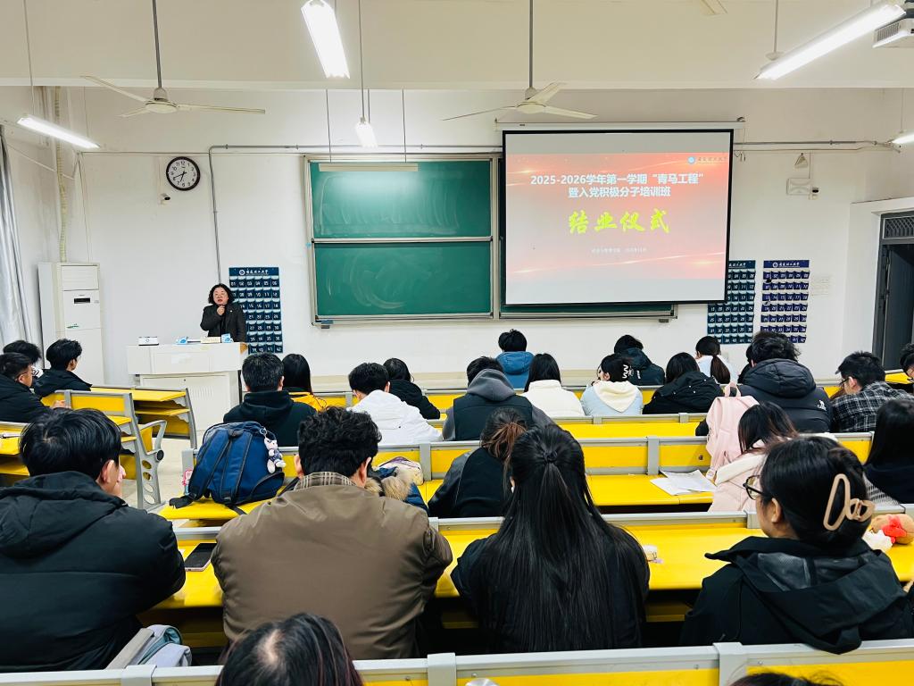 11月24日,经济与管理学院2025-2026学年第一学期青马工程暨入党积极分子培训班结业仪式顺利举行。学院党委副书记胡珊珊出席仪式并讲话,全体培训班共77名学员参加活动。