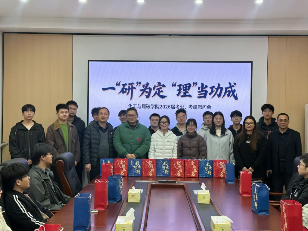 为激发考研学子斗志、缓解备考压力,11月28日,化工与爆破学院在崇礼楼东103会议室开展“一‘研’为定,‘理’当成功”考研、考公慰问活动,学院党委副书记曹秀军、毕业班辅导员以及2026届考公、考研学生代表参加。