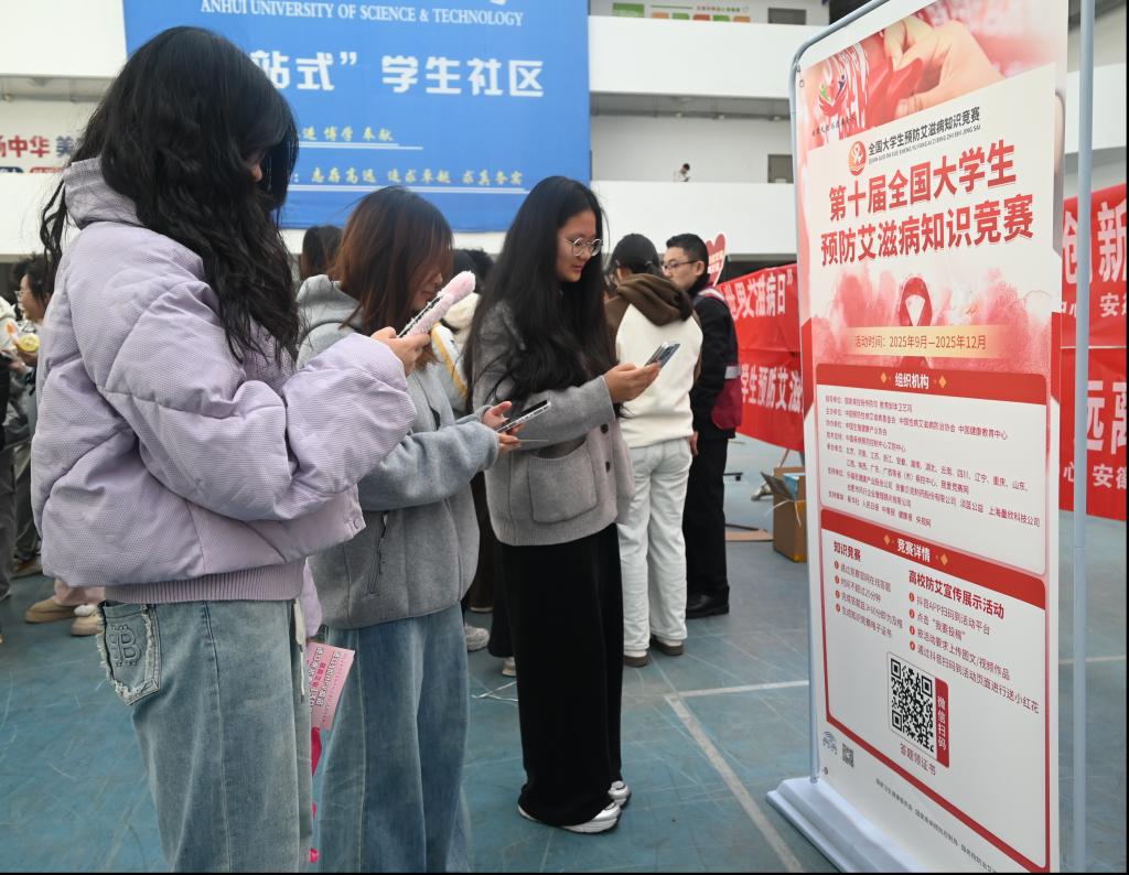 本次游园会打破传统宣传模式,以寓教于乐的形式将防艾知识融入互动体验。活动设置了防艾知识宣教区、文化展示区、互动体验区和游戏区,通过场景化布局与沉浸式设计,实现知识与体验的深度融合。同学们有序穿梭于各区域,在宣教区聆听专业讲解,在游戏区通过趣味挑战巩固知识,在轻松愉悦的氛围中主动学习,筑牢自身健康防线,最终打卡任务完成后兑换领取心仪礼品。在淮南市疾控中心的专业支持下,活动既保证了知识传播的权威性,又契合青年群体兴趣,搭建起“专业可靠、贴近青年”的健康沟通桥梁。