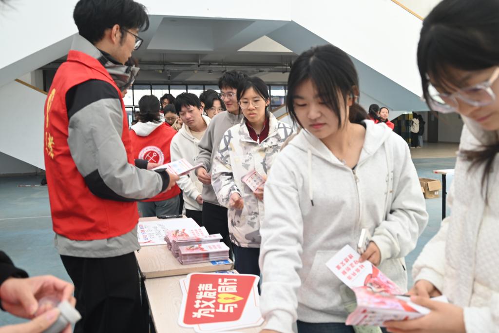 学生在领取活动宣传册