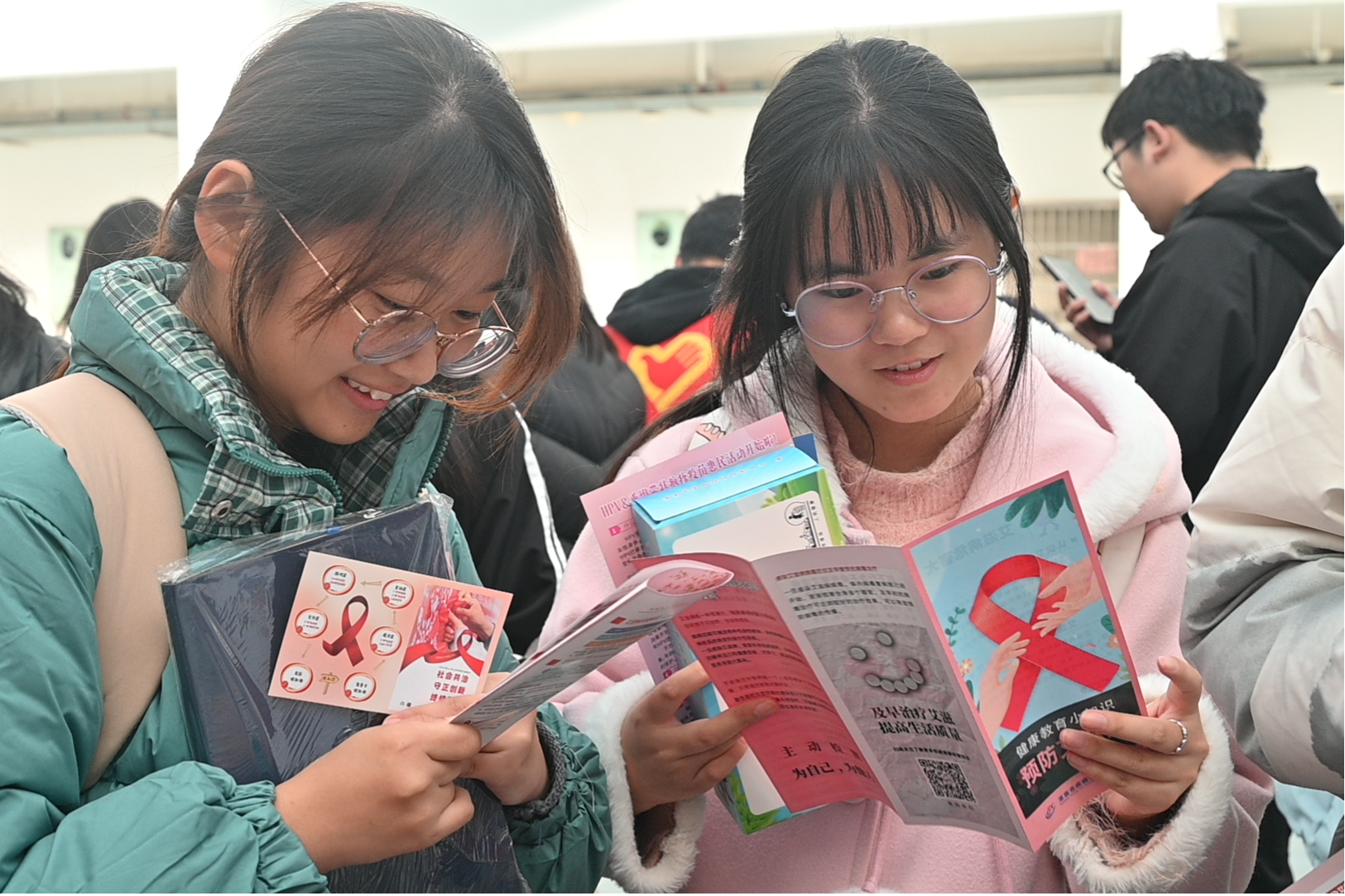 学生认真阅读宣传手册