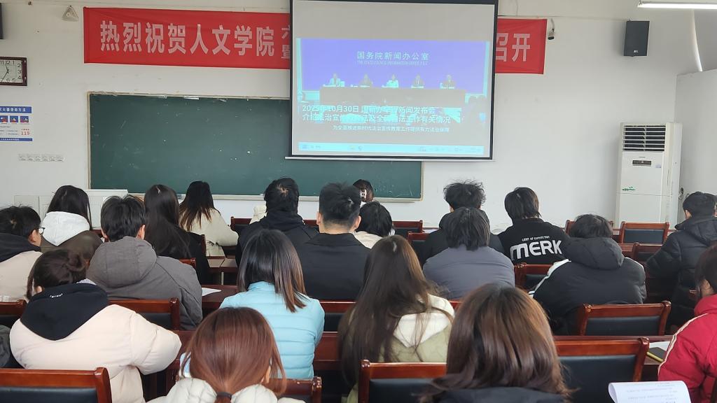 今年“国家宪法日”的主题是“学习宣传贯彻习近平法治思想,推动宪法深入人心”。人文社会科学学院组织100余位师生通过教育部全国青少年普法网观看了“国家宪法日”主题直播活动。直播内容丰富多样,让师生们对宪法有了更为直观、深刻的认识。此次专题教育活动不仅增强了师生们的宪法意识,更在校园内营造了尊崇宪法、学习宪法、遵守宪法、维护宪法、运用宪法的良好氛围。会前,学院还集中开展了“宪法晨读”活动。师生们纷纷表示,在今后的学习和生活中,要严格遵守宪法规定,积极传播宪法知识,以实际行动维护宪法的尊严和权威。