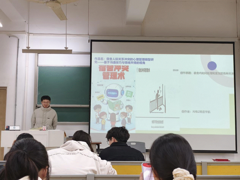 经评选,光电信息25-2班岳宇航等2人获一等奖,光电信息25-1班郑宇洋等3人获二等奖,工程力学25-1班熊心宇等5人获三等奖。获奖作品不仅展现了AI技术在心理主题创作中的潜力,也反映了同学们对心理健康问题的关注与思考。