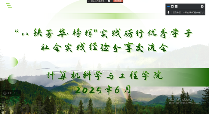 为发挥榜样引领作用,助力学生更好地开展暑期社会实践活动,6月26日晚,计算机科学与工程学院线上举办了“八秩芳华·榜样”优秀学子经验分享交流会。
