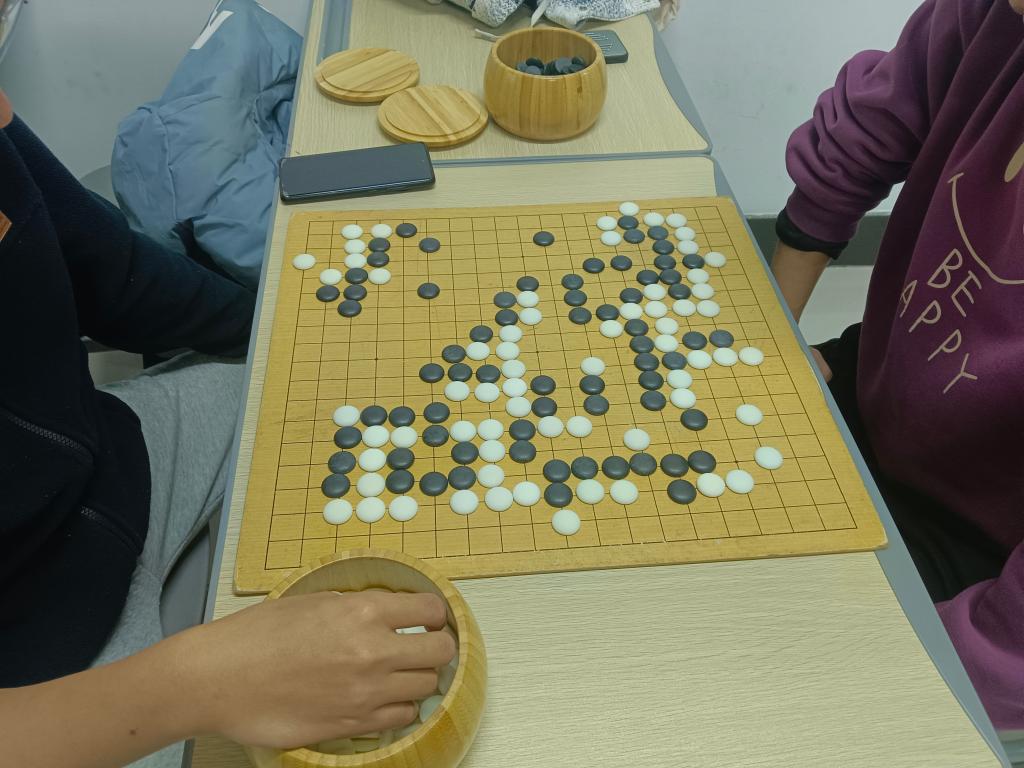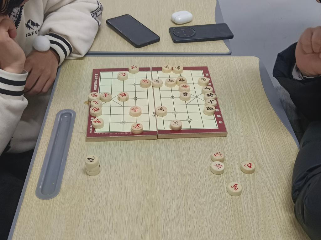12月15日至28日,棋社现场经精心规划,划分出围棋、中国象棋、国际象棋、五子棋等多个专属对弈区域。同学们依据个人兴趣自主参与,或三五结伴组成对弈小组,或在学长学姐的邀请下有序入座。活动现场,清脆的落子声此起彼伏,成为交流的主要载体。对弈者凝神思索、专注博弈,成功制敌时面露会心笑容;旁观同学则轻声探讨棋局策略,各类场景共同构成了活动现场的生动图景。针对初入棋社的新生,在场同学主动伸出援手,耐心提供技巧指点与鼓励,帮助新生快速消除陌生感,顺利融入对弈氛围,切实感受智力博弈的独特魅力。方寸棋盘之上,不仅是棋艺的比拼,更是情感与思想的交流桥梁。新生与老生、新生与新生之间的距离感在无声的对弈中逐渐消解,为校园文化交流营造了和谐氛围。