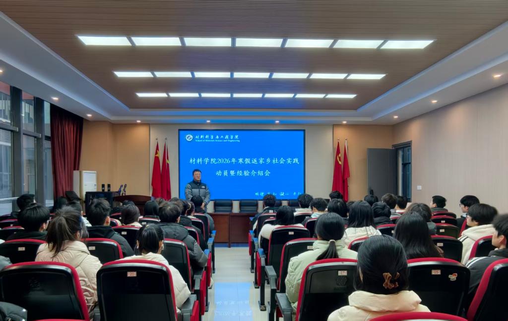 为引导青年学子在寒假返家乡社会实践中受教育、长才干、作贡献,扎实推进实践工作有序开展,1月12日,材料科学与工程学院在崇义楼B118报告厅召开2026年寒假返家乡社会实践动员暨经验介绍会。学院团委负责人、本科一年级辅导员、学生会代表及本科一二年级各班级代表参会。