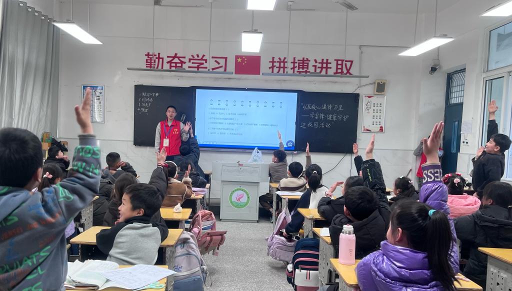 为帮助小学生预防春季传染病,并提升安全防护意识。3月20日,医学院临床25-5班“医心向暖”志愿服务队来到淮南市山南新区玉兰小学,开展“学雷锋·健康守护进校园”主题活动。