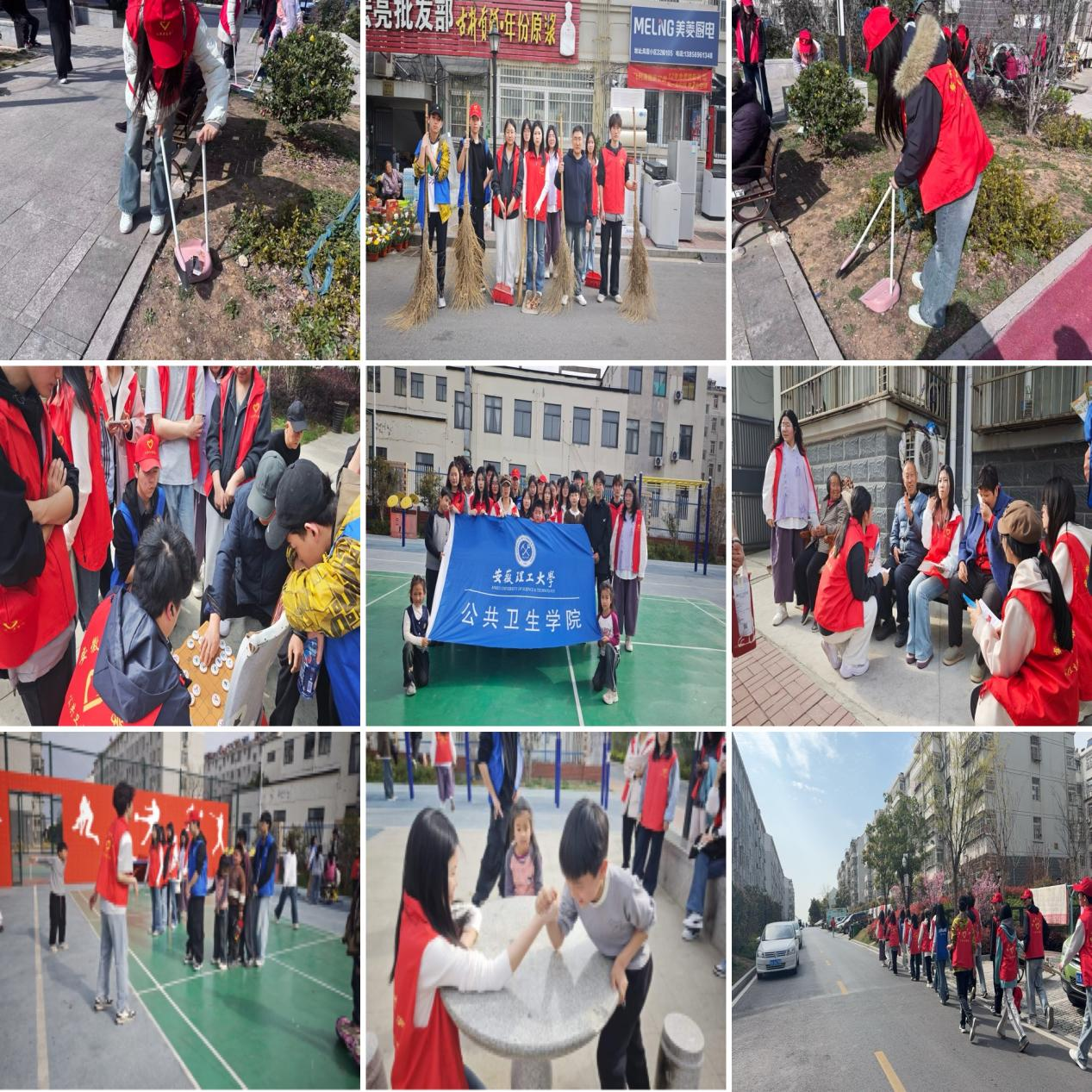 活动现场,志愿者们分工协作、有序行动,深入社区楼栋、广场等区域开展垃圾清理行动;在便民服务点,志愿者为居民提供政策咨询、反诈宣传、智能手机指导等贴心服务;在社区活动中心,志愿者们化身“大朋友”,与孩子们一起开展了趣味运动。