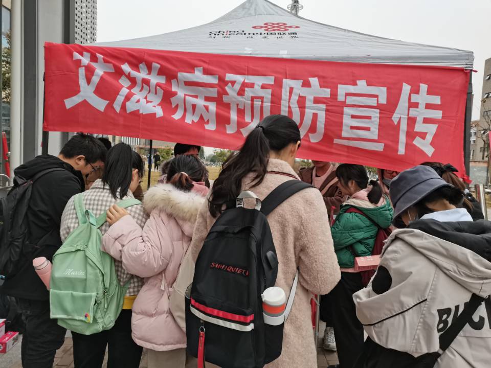 十二月的淮南已经入冬,即使是中午,气温也依旧不高。但是志愿者们依然按时到达指定的仁、爱、义三个食堂门口有条不紊的开始布置宣传摊位,派发宣传单。同时志愿者们各司其职,热情地向同学们宣传讲解关于艾滋病的相关知识,让同学们加深对艾滋病的了解从而在大学期间可以更好的保护自身健康,远离艾滋病。不仅如此,志愿者们精心准备了线上答题环节,通过答题的方式,让同学们对艾滋病有了进一步的认识。在现场时常能听到同学们向志愿者们询问不了解的知识的声音和志愿者们耐心详细讲解的声音。答题结束后,志愿者问同学们通过做这些题目,有什么感受,有的同学自觉惭愧,认为平日里对艾滋病的了解还是太少;有的同学信心满满,因为平日里对艾滋病的了解使得他们在答题时得心应手;也有好问的同学向志愿者们询问关于艾滋病的深入问题,比如艾滋病的潜存时间为多少,艾滋病感染的具体症状有哪些……志愿者们对这些问题都一一做出了详细的解答。最后,对艾滋病相关知识了解透彻的同学成功在答题中做到了满分并收到了相应的小奖品。这次的宣传活动,吸引了众多经过的同学,带领大家正确客观的认识了艾滋病。活动现场气氛热烈,取得了良好的效果。