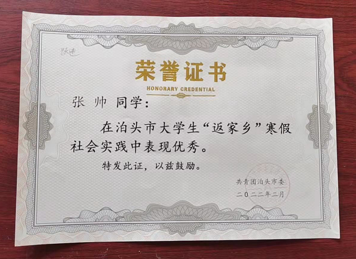 弘扬志愿服务精神。2月25日,学校收到一份来自共青团泊头市委颁发的荣誉证书,表彰在大学生“返家乡”寒假社会实践中表现优异的力物学院2020级学子张帅。假期,张帅主动报名参与当地社区疫情防控排查,挨家挨户上门查看有无市民码、登记信息,宣传疫情防控相关政策,为当地疫情防控工作做出积极贡献。“在测血压血糖、静脉采血、照方取药的过程中,我深切体会到医生这个职业要树立终身学习的理念,理论结合实践不断提高自己。把简单的事做好就是不简单,把平凡的事做好就是不平凡!”医学院2019级学生陈翔在服务中深有感触,他结合专业所学知识,参与社区诊所医疗志愿活动,做好家乡疫情防控医疗保障工作。寒假期间,安理学子积极参与“为家乡献策”、“春运暖冬”、扫雪清路、保护生态、关爱儿童等“返家乡”志愿服务工作,受到各地表彰和感谢信50余份,弘扬志愿服务精神,践行青春使命。