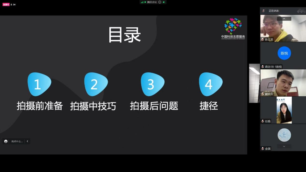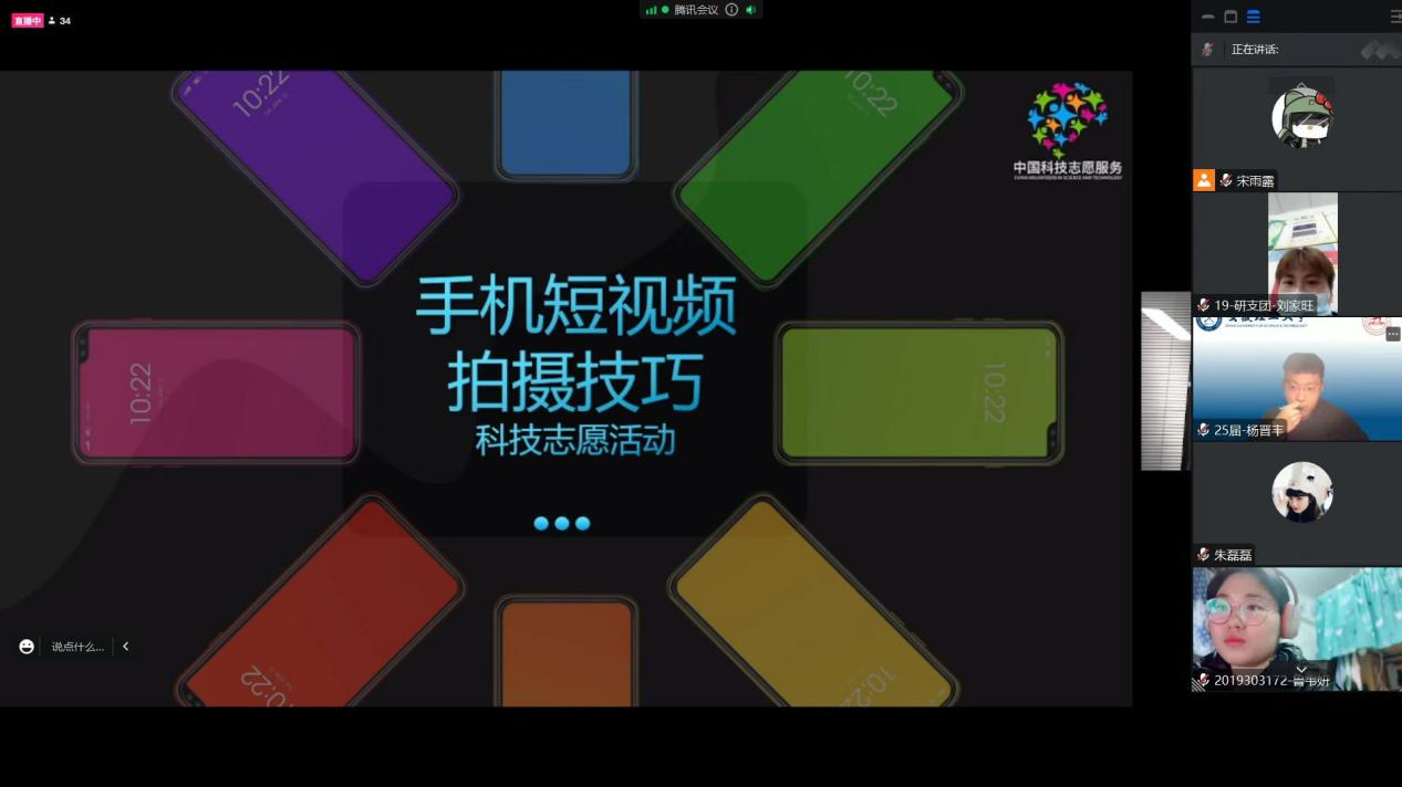 为持续提高科技志愿服务的影响力,提高研究生支教团成员的拍摄技能,从而在支教地更好地开展宣传工作。3月22日,我校第24届和25届研究生支教团成员积极参加中国科技志愿app开展的“手机短视频拍摄技巧科技志愿活动”直播培训。