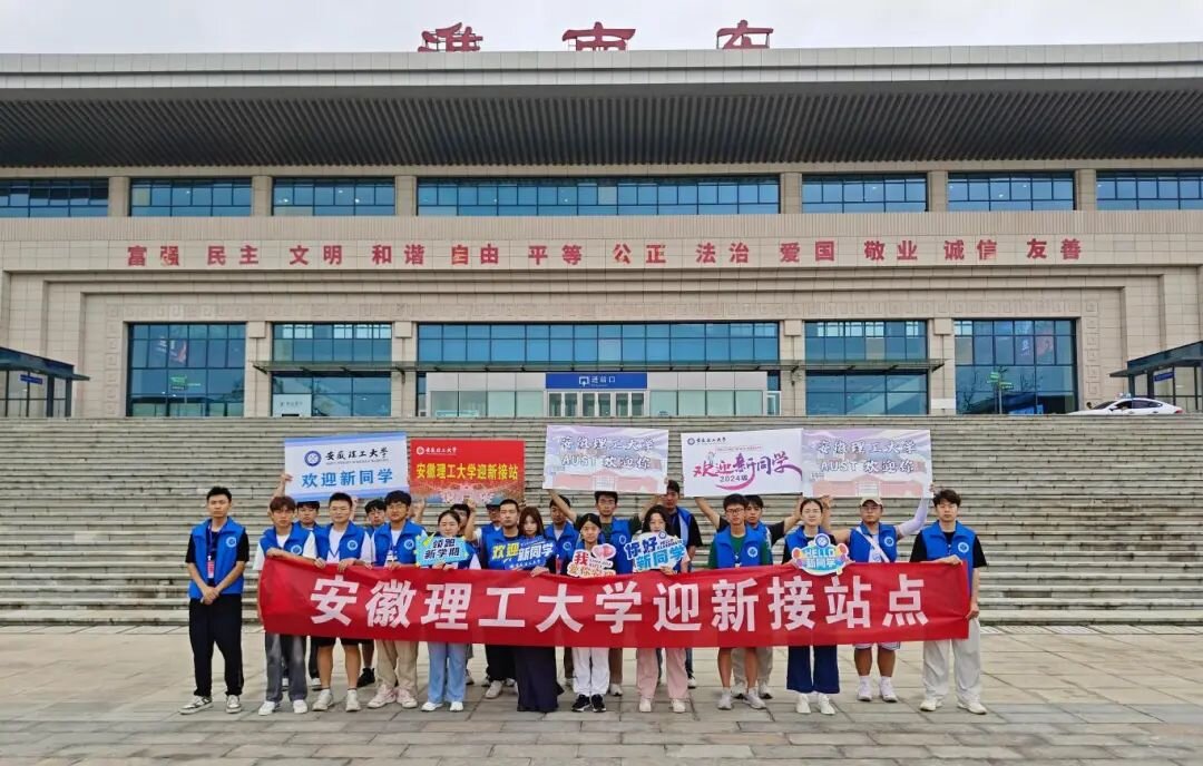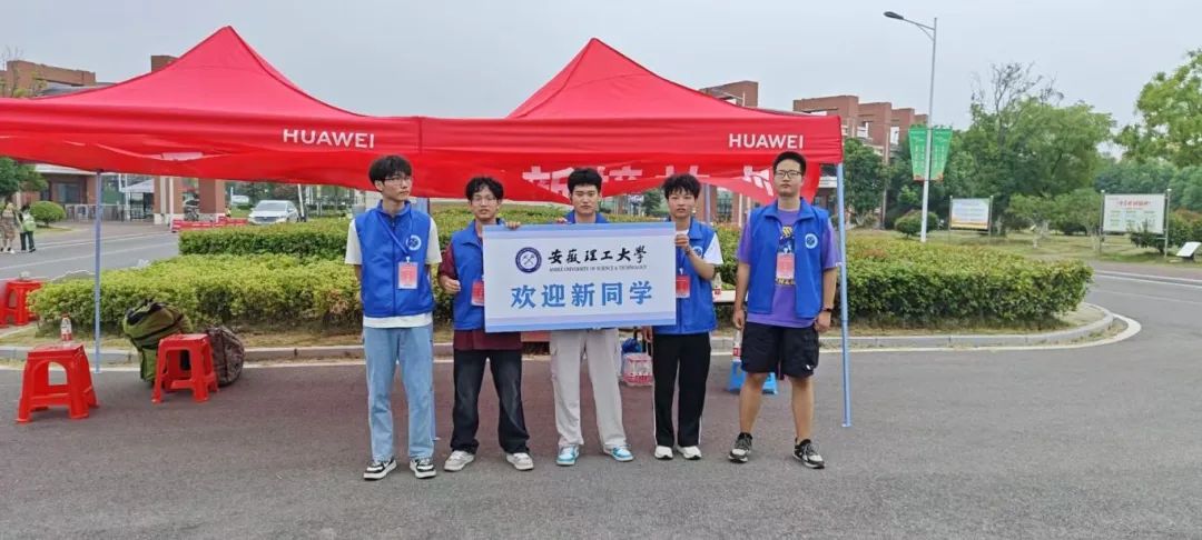 负责合肥校区接站的志愿者早晨5点多就从淮南出发,当清晨的第一缕阳光还未完全洒满校园,迎新志愿者们已早早摆放好物资到达指定岗位,他们着装统一,分布在合肥南站、合肥站、淮南东站、学校南门、北川楼前等十几个迎新站点,耐心等待着第一批新生的到来。