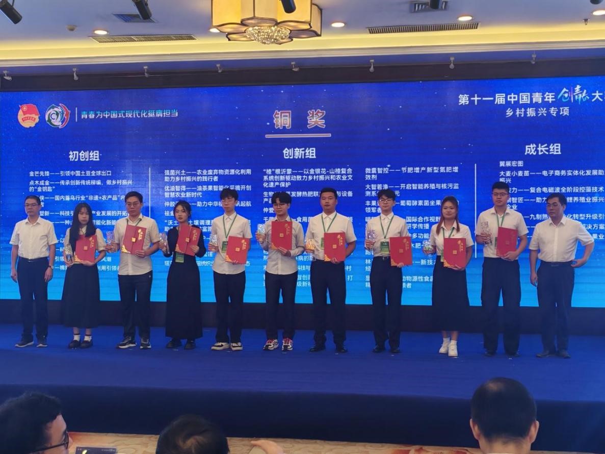2024年9月11-13日,为期三天的第十一届中国青年创青春大赛乡村振兴专项全国总决赛与半决赛在福建漳州举行。来自各地晋级全国赛的138个项目激烈角逐,我校学子张明旭、李欣桓、陈昭、贺嘉乐、陈进峰(指导老师:何涛)的参赛项目《千菌兴农——食用菌超净种植装备领菌者》获铜奖。操语烟、吴瀚、任家豪(指导老师:吕伟才、余学祥)的参赛项目《智农监测-智能化地面沉降预警服务商》获优秀奖。