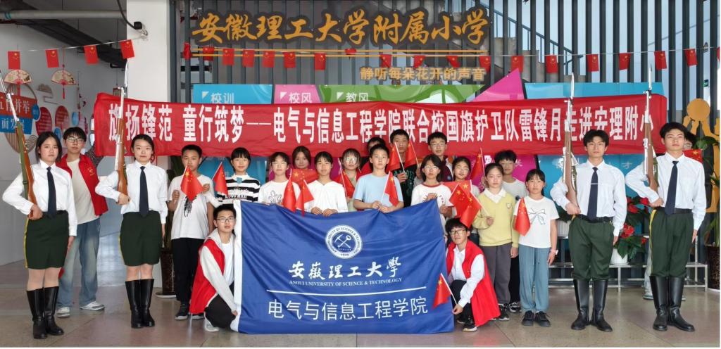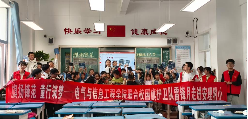 3月26日下午,电气与信息工程学院联合校国旗护卫队走进安理附小开展“学雷锋”志愿服务活动,为安理附小学生播撒爱国种子。
